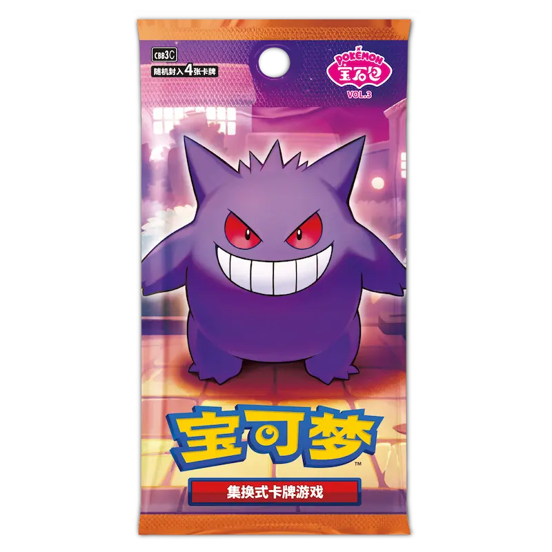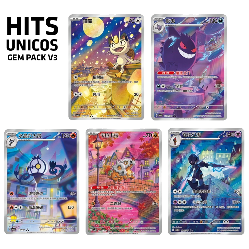 Descubre la caja Pokémon Gem Pack Vol. 3, una exclusiva edición china inspirada en los Pokémon de la noche: Gengar, Mimikyu, Ceruledge, Morpeko y más.